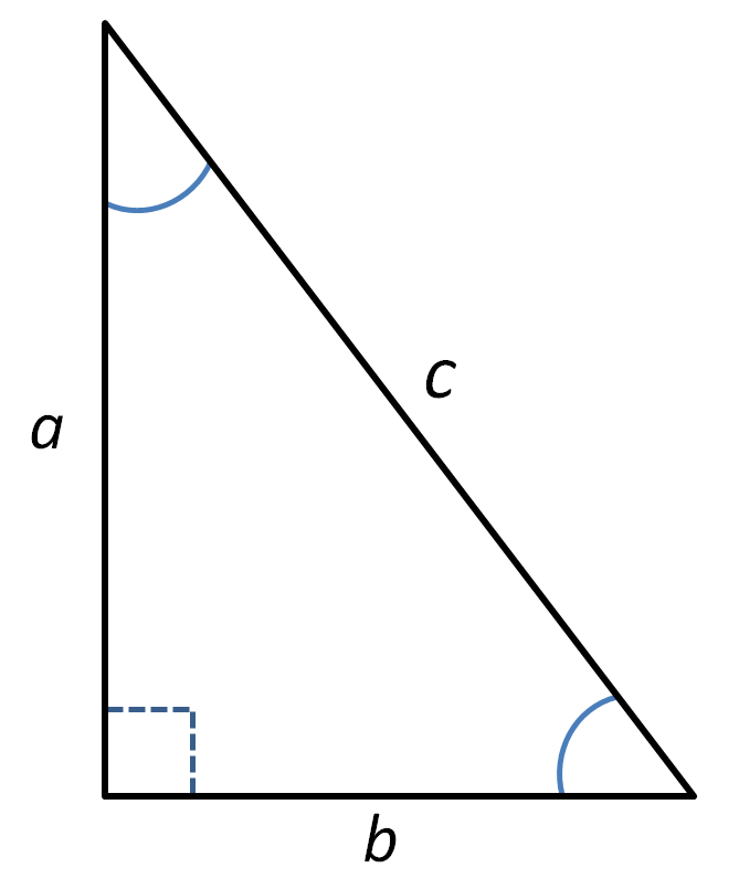 Kaavana sama asia ilmaistaan seuraavasti (kirjaimet \(a\), \(b\) ja \(c\) ovat sivujen pituuksia kuvassa 1):