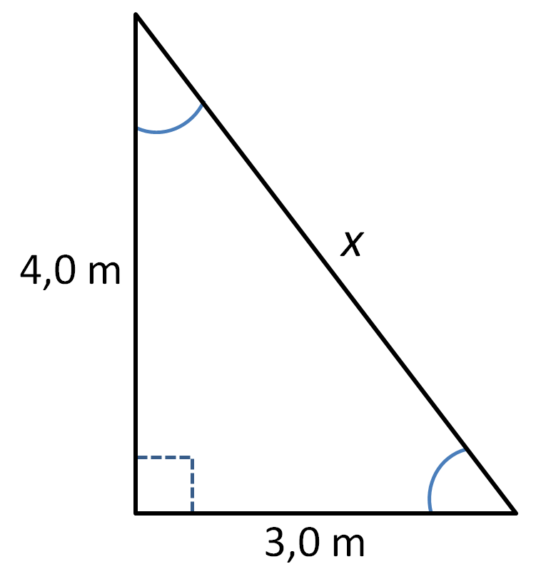 \begin{align*} 4,0^2+3,0^2&=x^2 \quad \Vert \:\text{puolten vaihto}\\ x^2&=4,0^2+3,0^2 \quad \Vert \sqrt{}\\ \left |x\right |&=\sqrt{4,0^2+3,0^2}=\sqrt{16+9,0}=\sqrt{25}=5,0 \\ x&=\pm 5,0 \end{align*}Vastaus: Hypotenuusan pituus on 5,0 metriä.