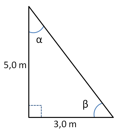 - \begin{align*} \tanα &= \frac{3,0}{5,0} \\ \tanα &= 0,6 \quad \Vert \:\text{Laskimen avulla saadaan α selville: } \tan^{-1} \\ α & ≈ 31° \\ \end{align*}