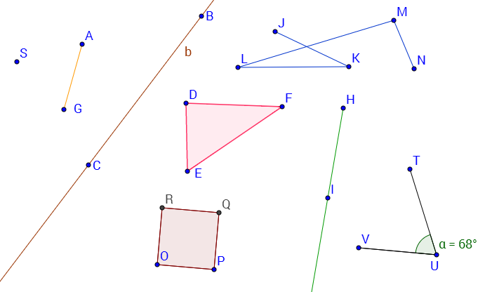 - Kulma α (kreikkalainen aakkonen)/ kulma TUV (oikean kyljen piste - kulman kärki - vasemman kyljen piste) / kulma U