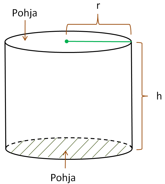 Lieriön tilavuus lasketaan aina kertomalla pohjan pinta-ala lieriön korkeudella: