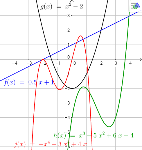 Erilaisilla funktioilla on erilaiset kuvaajat. Erityisesti funktion aste, eli muuttujan korkein potenssi, vaikuttaa olennaisesti kuvaajan muotoon.