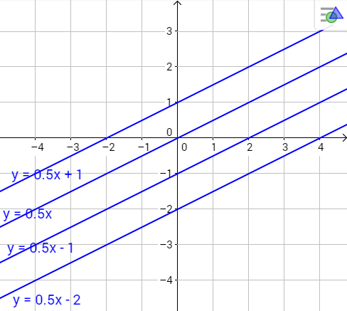 Kuvassa 1 on neljän ensimmäisen asteen polynomifunktion kuvaajat, joiden vakio \(b\) vaihtelee. Vertaa sen arvoa \(y\)-akselin leikkauskohtaan.